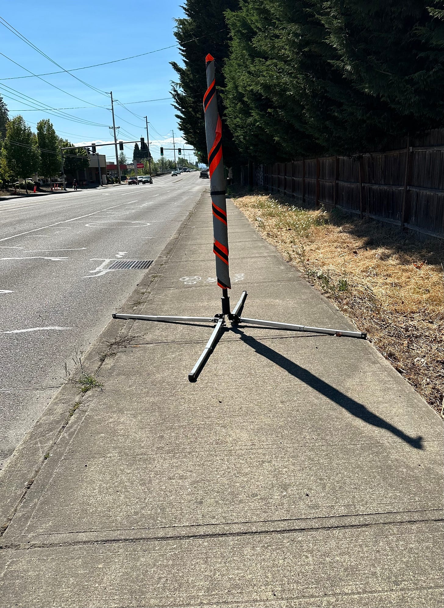 Sometimes there are impediments to proceeding in a straight line, as this in this configuration on Southeast César Chávez where I have to navigate around the phone pole to cross the street.
