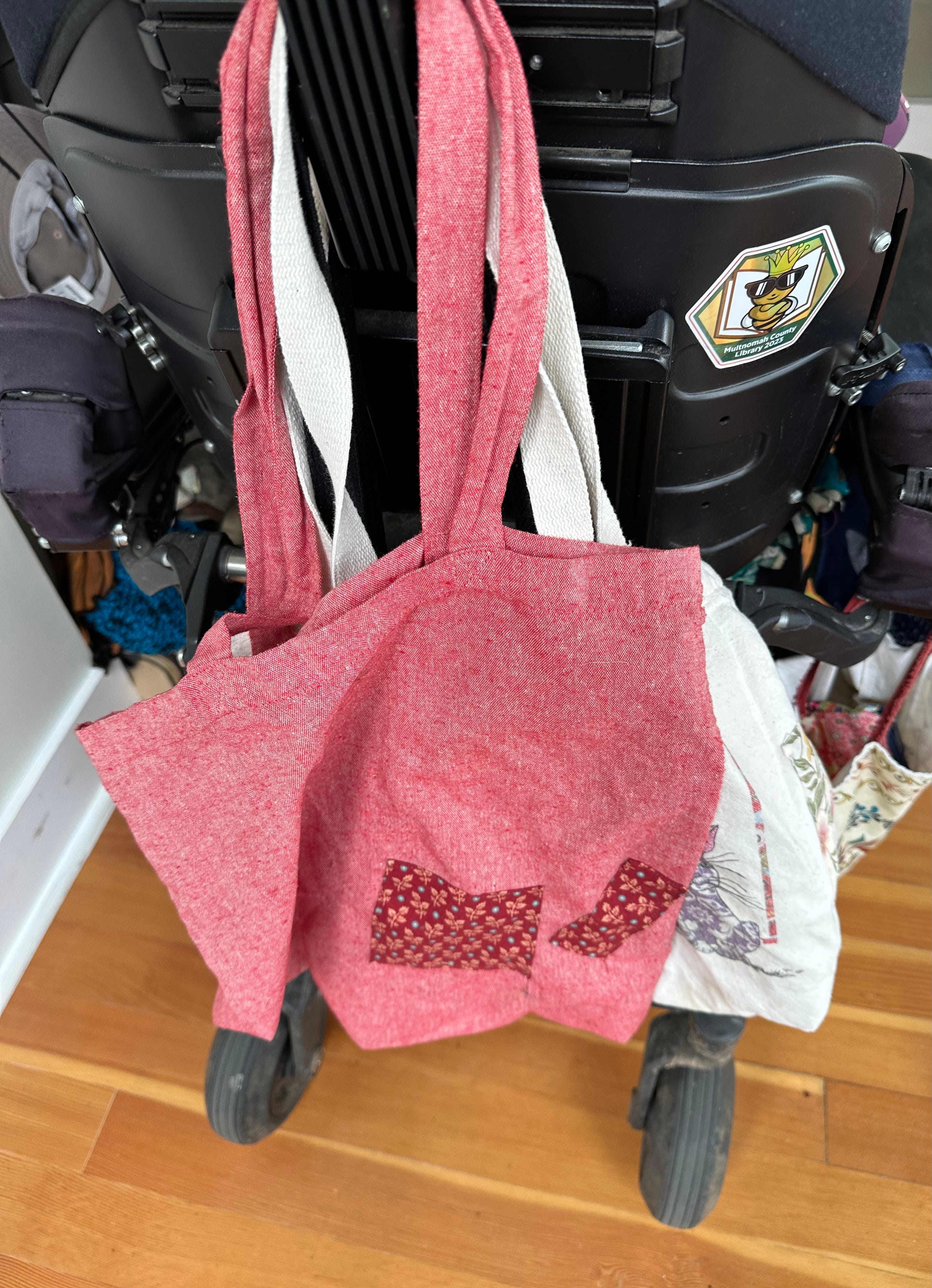 There came a time when I noticed that many of the bags I hang on the back of my wheelchair had rips in them. It didn’t take long to discover the culprit—the Evil Trimet Hook.