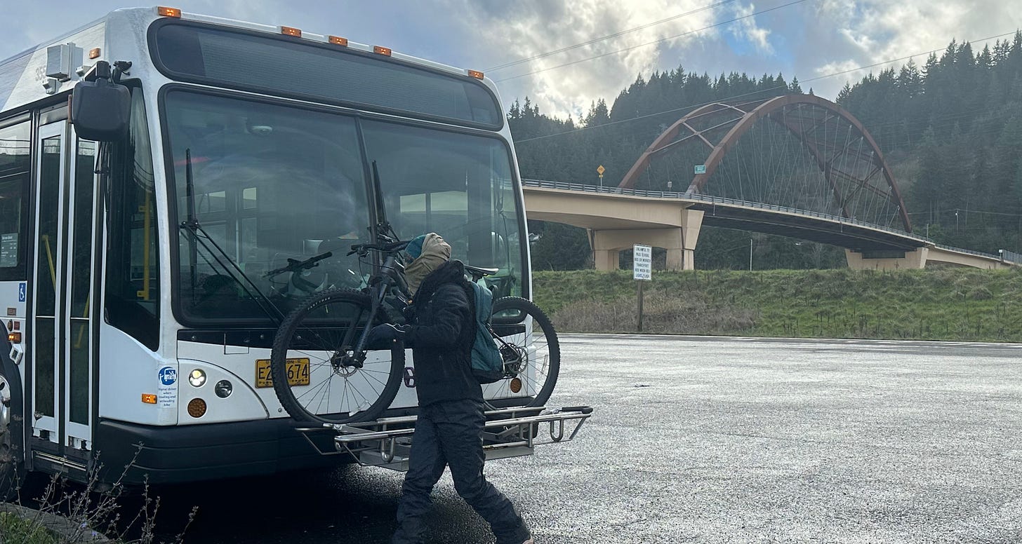 Here’s the bridge from the bus park. A woman is loading up her bike for the trip back to Portland.