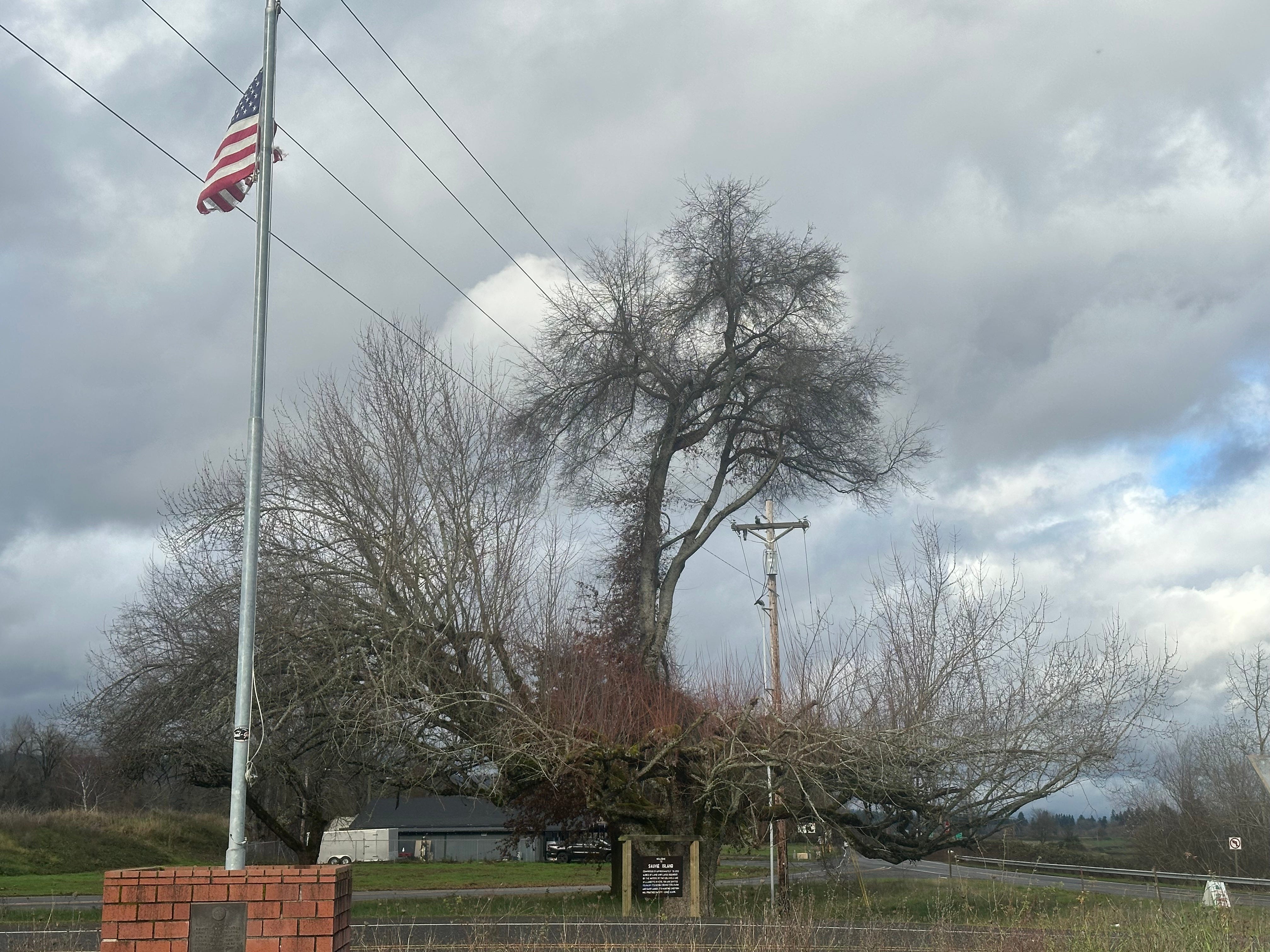 At the entrance to the island, a memorial to fallen soldiers erected by the American Legion in 1961 overlooks a tall tree seems to be growing from the spreading tree in front of it.