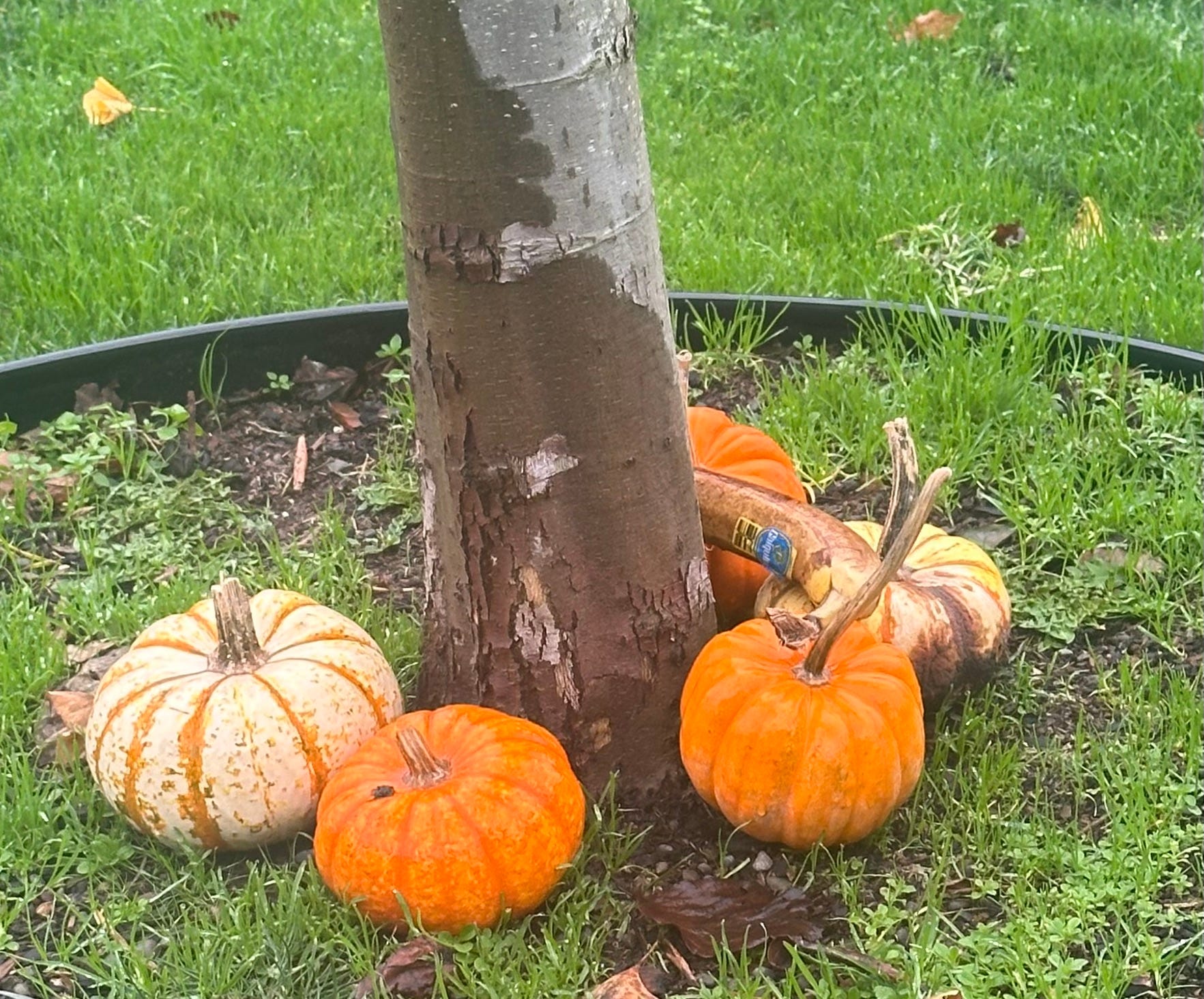 But I also found this little necklace of pumpkins surrounding a sapling. And not just fall pumpkins, but also a banana.