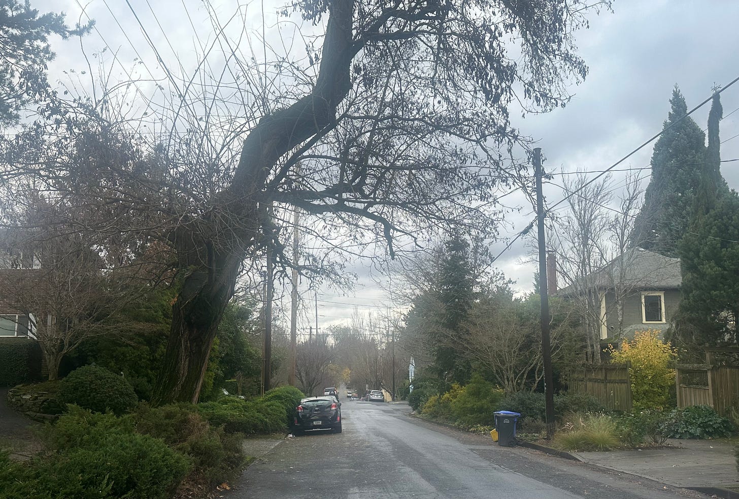 Winter casts two kinds of magic in Oregon. One is the graceful tracery of bare trees, shorn of leaves, showing lovely form and naked squirrels’ nests. Their limbs cast long shadows on sunny days, seasonal sun dials.